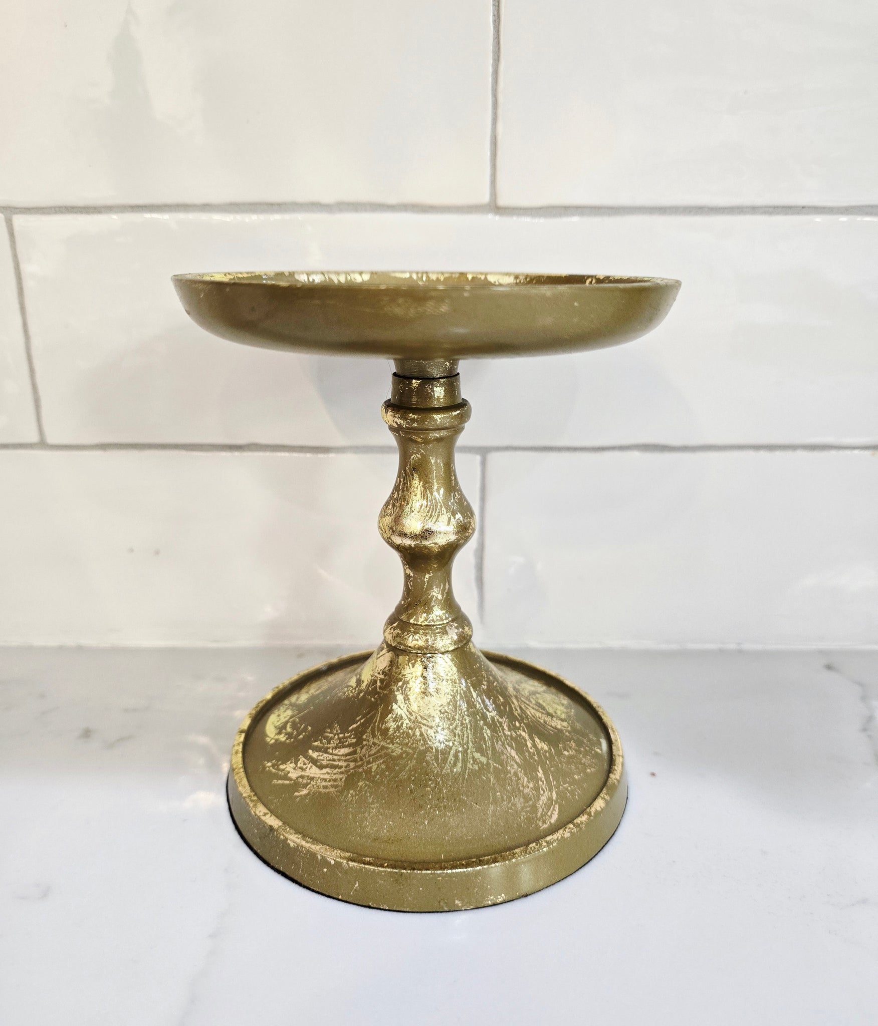 2 Gold Pedestal Stands — A pair of shimmering gold stands that elevate your décor pieces, adding the perfect hint of sophistication.